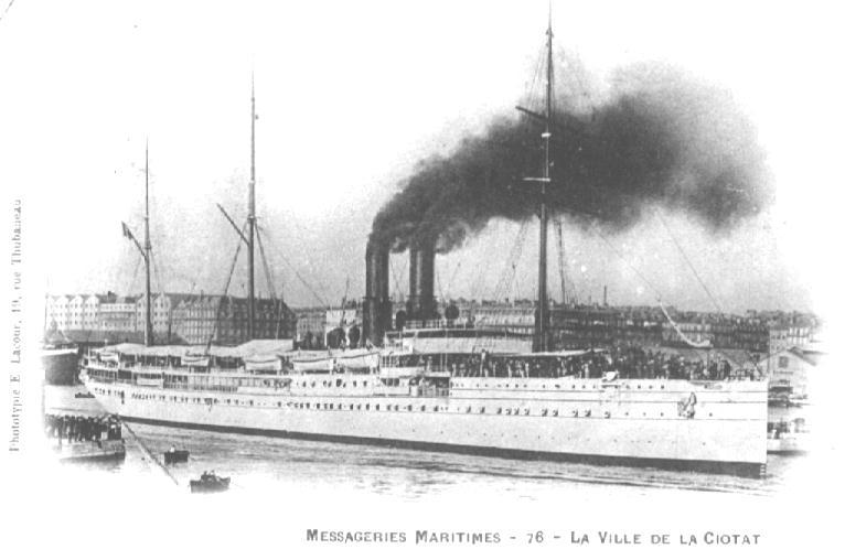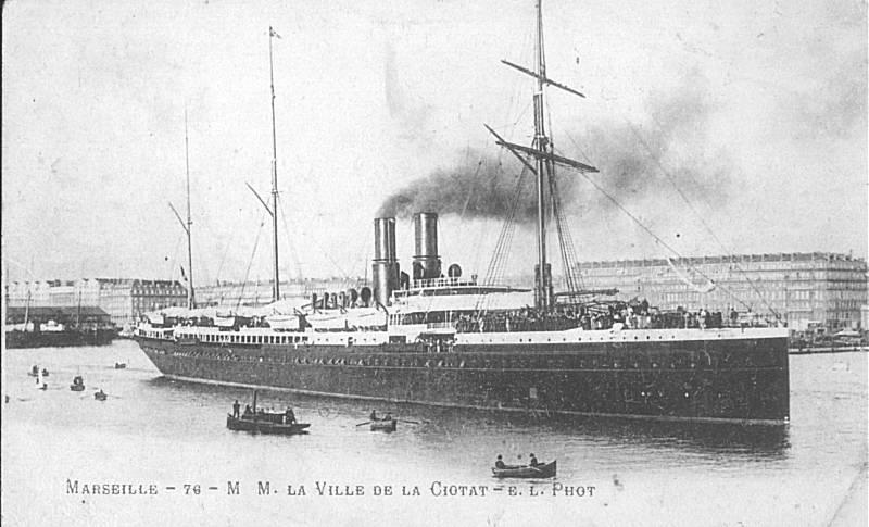 (Pour mémoire j'indiquerai que la "Ville de la Ciotat" était pour l'époque un très beau navire : longueur 155 m. largeur 16 m. Vitesse : 15 nuds)