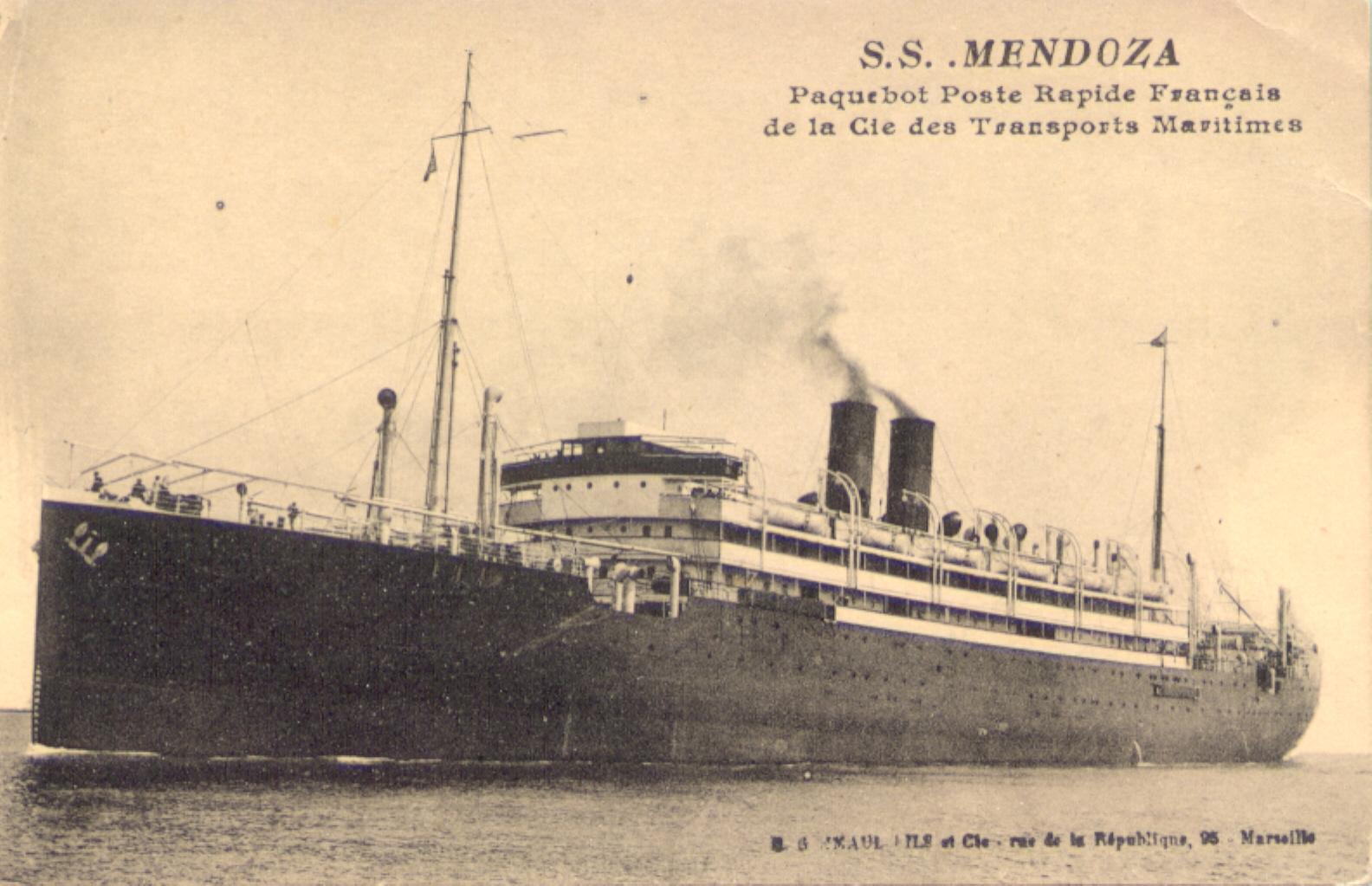 Je suis resté sur le "Formosa" jusqu'en février 1922. A l'arrivée à Marseille je suis prévenu, dés l'accostage, que je suis muté sur le "MENDOZA", un paquebot récent, beaucoup plus important que le "Formosa", mais hélas qui part pour Buenos-Aires 48 heures plus tard ! II m'est impossible de refuser.