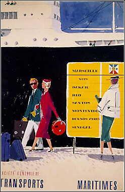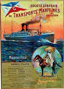 Mon premier embarquement me met à bord du "PRINZ-REGENT" (ex-paquebot allemand baptisé par la suite ''CORDOBA"). J'effectue plusieurs voyages sur Alger et courant septembre je suis muté sur le paquebot "FORMOSA" de la ligne de l'Amérique du Sud. Nous rallions Gênes chaque voyage pour y prendre un millier d'émigrants italiens en plus des 120 passagers de classe que nous prenons à l'escale de Marseille. A Barcelone et Alméria ou à Valence et Alicante nous prenons aussi à chaque voyage 200 à 300 émigrants espagnols. Escales à Dakar, Rio-de-Janeiro, Santos, Montevideo et terminus à Buenos-Aires ou débarque la plus grande partie de nos passagers. Nous en repartons huit jours après, effectuant au retour les mêmes escales avec Las Palmas (Iles Canaries) en plus pour y charger des régimes de bananes, les seules que l'on trouve en France à cette époque. Nos retours seffectuent avec le plein de passagers en classe, mais seulement avec 150 à 200 ex-émigrants italiens ou espagnols qui reviennent soit définitivement, soit temporairement dans leur pays. Nous passons quinze jours à Marseille et repartons pour un nouveau voyage.