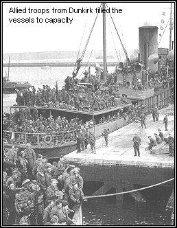Et c'est finalement la bataille de Dunkerque sur laquelle je ne m'étendrai pas si ce n'est pour dire qu'un bombardement aérien intense et presque ininterrompu pendant toute la journée du 27 mai a réduit la ville en ruines et a été des plus meurtriers ! Bref, pressentant depuis quelques jours un départ en catastrophe, j'avais pu confier à un patrouilleur qui partait pour Cherbourg deux valises contenant le principal de mes affaires, ne conservant qu'un échange de linge et mes objets de toilette. J'avais eu une riche idée car le sur lendemain, le 3 juin, la soirée, l'Amiral Abrial fait réunir tout lEtat-major. Il nous donne liberté de manuvre pour tenter notre chance et essayer de nous embarquer au cours de la nuit pour l'Angleterre, car Dunkerque est sur le point d'être pris par les Allemands. Il y avait plus de 30.000 hommes entre soldats et marins qui attendaient le salut cette nuit là sur les jetées de Dunkerque ! Heureusement la nuit était sans Lune et l'obscurité était profonde. Les navires, presque tous anglais, de toutes les dimensions, de toutes les catégories, de grosses embarcations aussi, de petits bateaux de plaisance, se succédaient les uns après les autres à partir de 21 heures. Ils étaient pris d'assaut dés l'accostage et repartaient quelques instants plus tard dés qu'humainement il ne leur était plus possible de prendre davantage de monde. Tous sont partis très surchargés et c'est un véritable miracle que tous aient pu arriver à bon port ! Pour ma part c'est vers 2 heures du matin, le 4 juin que poussé par une véritable marée humaine j'ai pu me hisser à bord du "NEWHAVEN" petit paquebot français faisant habituellement la ligne Dieppe Newhaven ! Nous y étions certainement plus de 2.000 ! De la mer un spectacle dantesque s'offrait à nos yeux vers la terre : de tous les cotés de gigantesques incendies éclairant de vastes ruines et dégageant une épaisse fumée, d'autres encore plus importants aux raffineries de pétrole et dans le lointain les lueurs et aussi les bruits de la bataille qui se poursuivait encore entre les derniers défenseurs de Dunkerque, sacrifiés ceux-là, pour permettre les ultimes embarquements ! et les troupes allemandes.