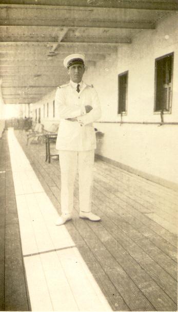 J'ai quitté ce navire en mai 1925 ,ayant été choisi pour être commissaire sur le paquebot "VALDIVIA" (ligne de Buenos-Aires). C'est une autre existence qui commence et qui me fait voir la navigation sous un aspect différent. Je n'ai plus de quart à faire, si ce n'est lorsqu'il faut remplacer un officier malade. Je règle mes occupations comme je lentends, mais j'ai quand même beaucoup de travail. Je suis chargé de tout le service administratif du navire, des passagers, de l'équipage, de la solde, des relations avec les passagers, avec les Autorités dans les ports ...etc.. et sur ce navire nous sommes à l'aller généralement prés de 1.800 personnes ! Vie mondaine aussi, il me faut apprendre à danser, à me servir d'une machine à écrire ! Mais je me suis adapté très vite et après un voyage j'étais rodé !